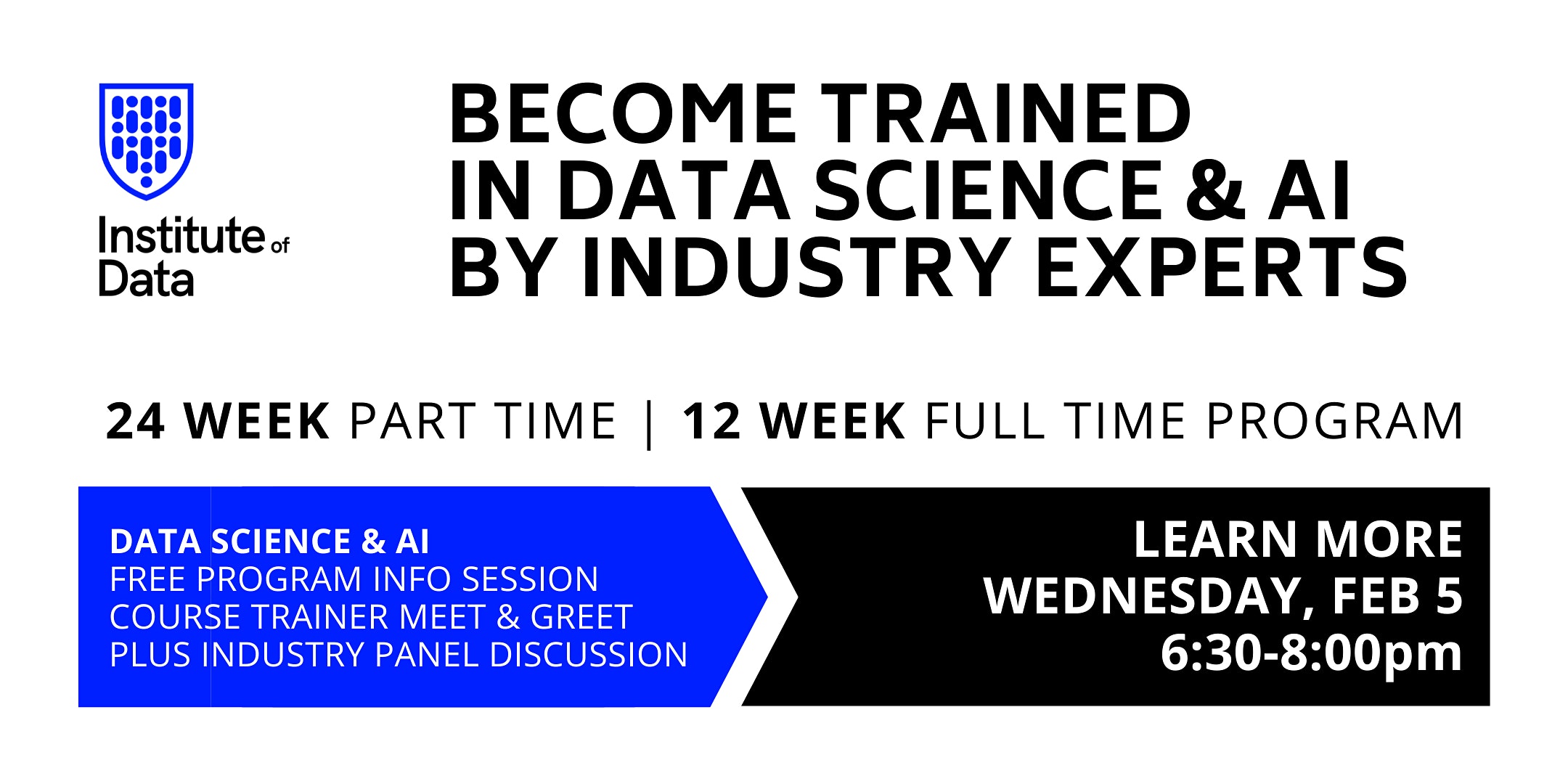 This event is for professionals looking to upskill or career change to data science and artificial intelligence. Seats are limited so register today! Institute of Data