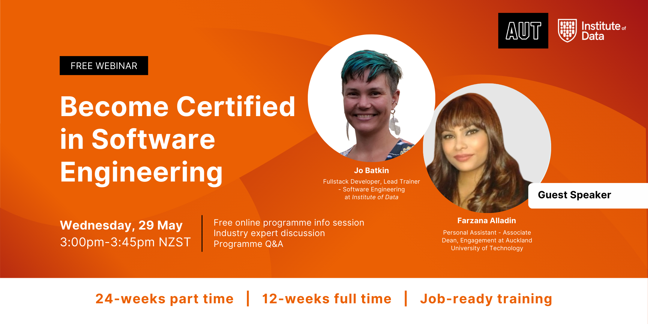 Join this free online info session to learn more about the Institute of Data’s Software Engineering part-time and full-time training programmes and have your career questions answered by industry experts and course trainers.