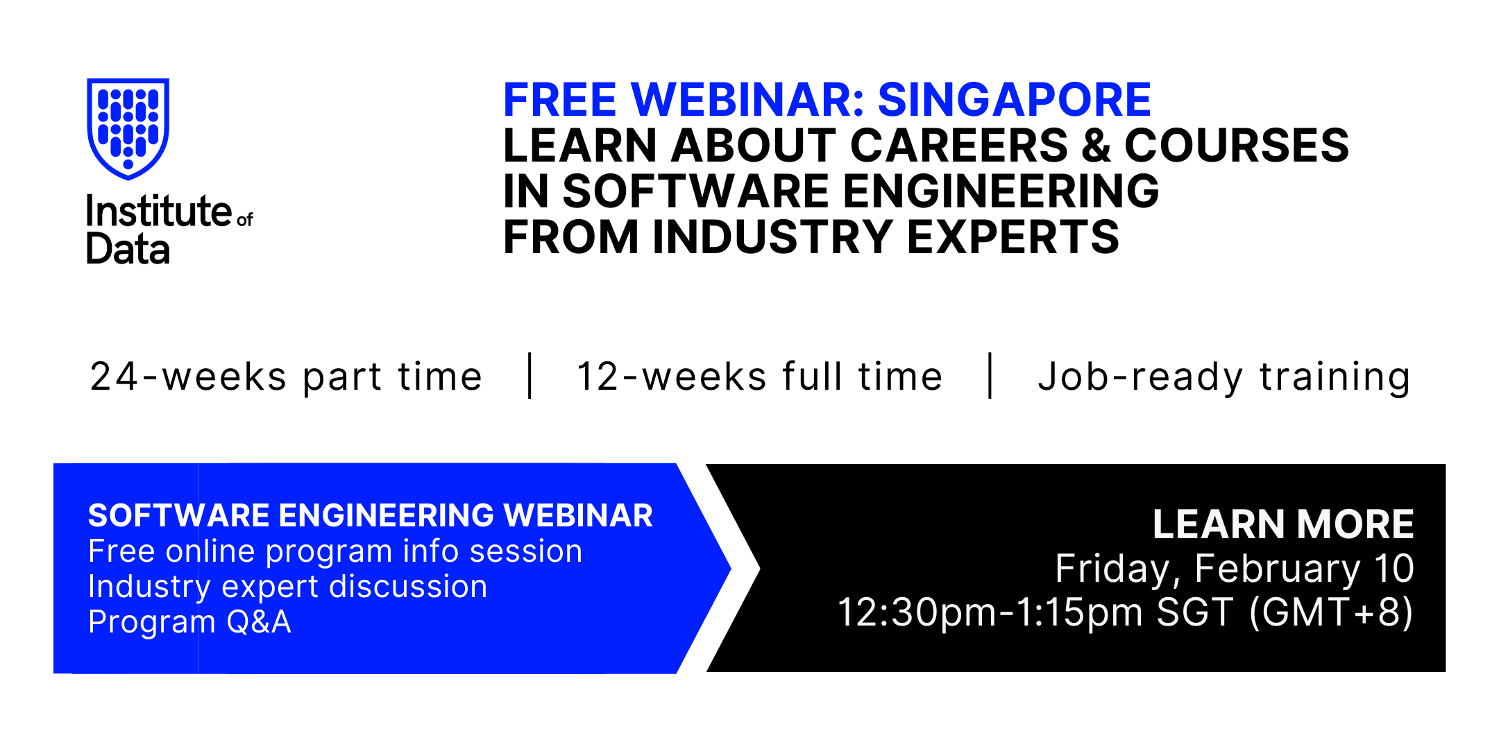 Join the online info session + panel Q&A to learn more about the Institute of Data’s upcoming Software Engineering Part Time and Full Time training programs in Singapore!